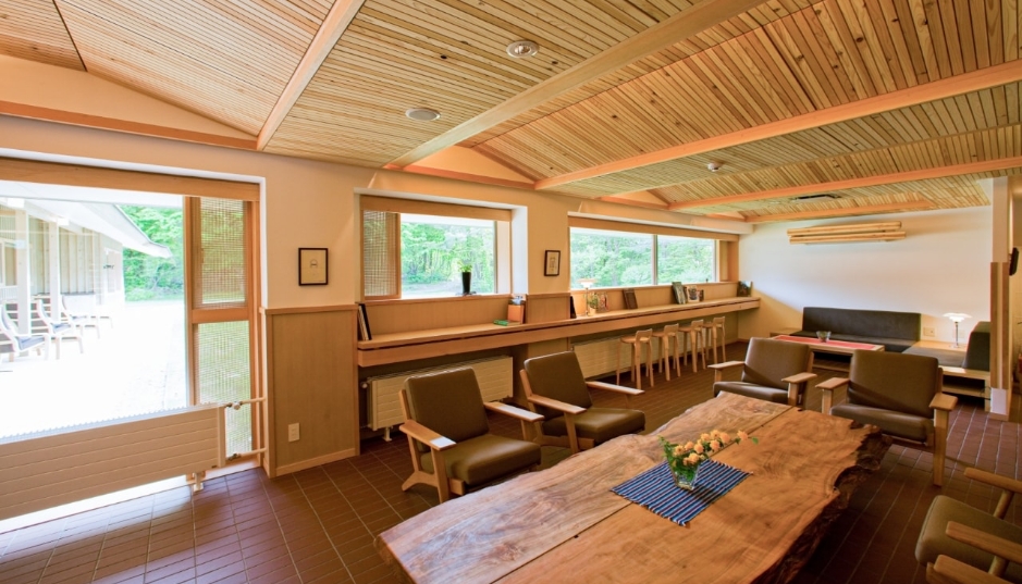 裏磐梯にある宿泊施設。森や沼が点在する山の中にひっそりと佇み、三角屋根の外観が可愛らしい雰囲気です。フィンランド語でHOTELLIは“ホテル”、AALTOは“波”を意味します。厳しい自然の中で豊かに暮らす北欧のライフスタイルと、自然を敬う日本人の心をつなげたい。そんな思いから始まりました。木の香り、珪藻土の壁の優しい質感、高い天井…。ここにいるだけで心地よく、ゆっくりとした時間が流れます。