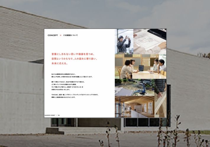 八光建設の会社案内では、私たちが大切にしている建築への考え方や、地域と向き合いながら培ってきた理念についてご紹介しています。